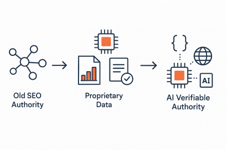 A backlink score was used to determine authority in the conventional search model. The AI model uses consensus and verifiability to gauge authority.